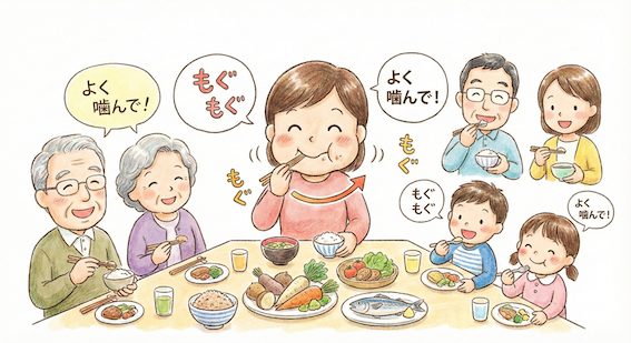 咀嚼回数の増加は、消化管ホルモン(インスリン分泌促進ホルモン、特にGLP-1など)の分泌を促し、満腹中枢を刺激して食欲を抑制し、結果的に過剰な食物摂取を防ぐことが、先行研究で示唆されています。