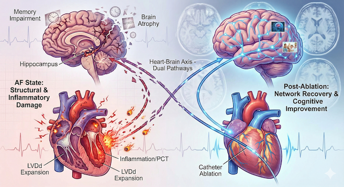Chen X, Ni J, Wang Y, Kou D, Ge D, Xue X, Zhao Y, Xu B, Li M and Chen J (2025) Cardiac structure and inflammation drive memory impairment via dual pathways of heart-brain axis dysregulation in atrial fibrillation patients undergoing catheter ablation. Front. Neurosci. 19:1725953. doi: 10.3389/fnins.2025.1725953