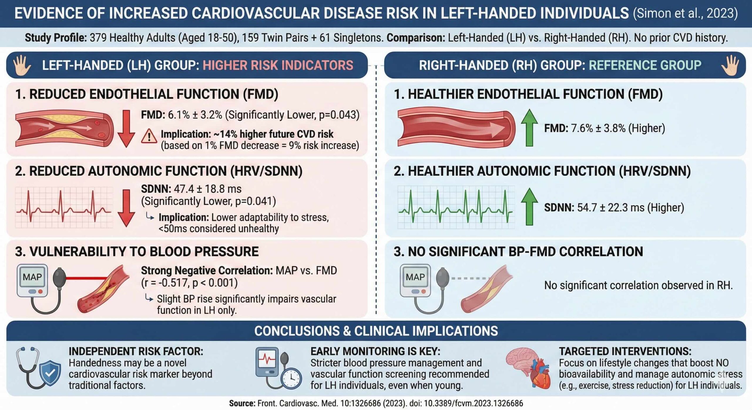 Simon AB, Norland K, Blackburn M, Zhao S, Wang X and Harris RA (2023) Evidence of increased cardiovascular disease risk in left-handed individuals. Front. Cardiovasc. Med. 10:1326686. doi: 10.3389/fcvm.2023.1326686