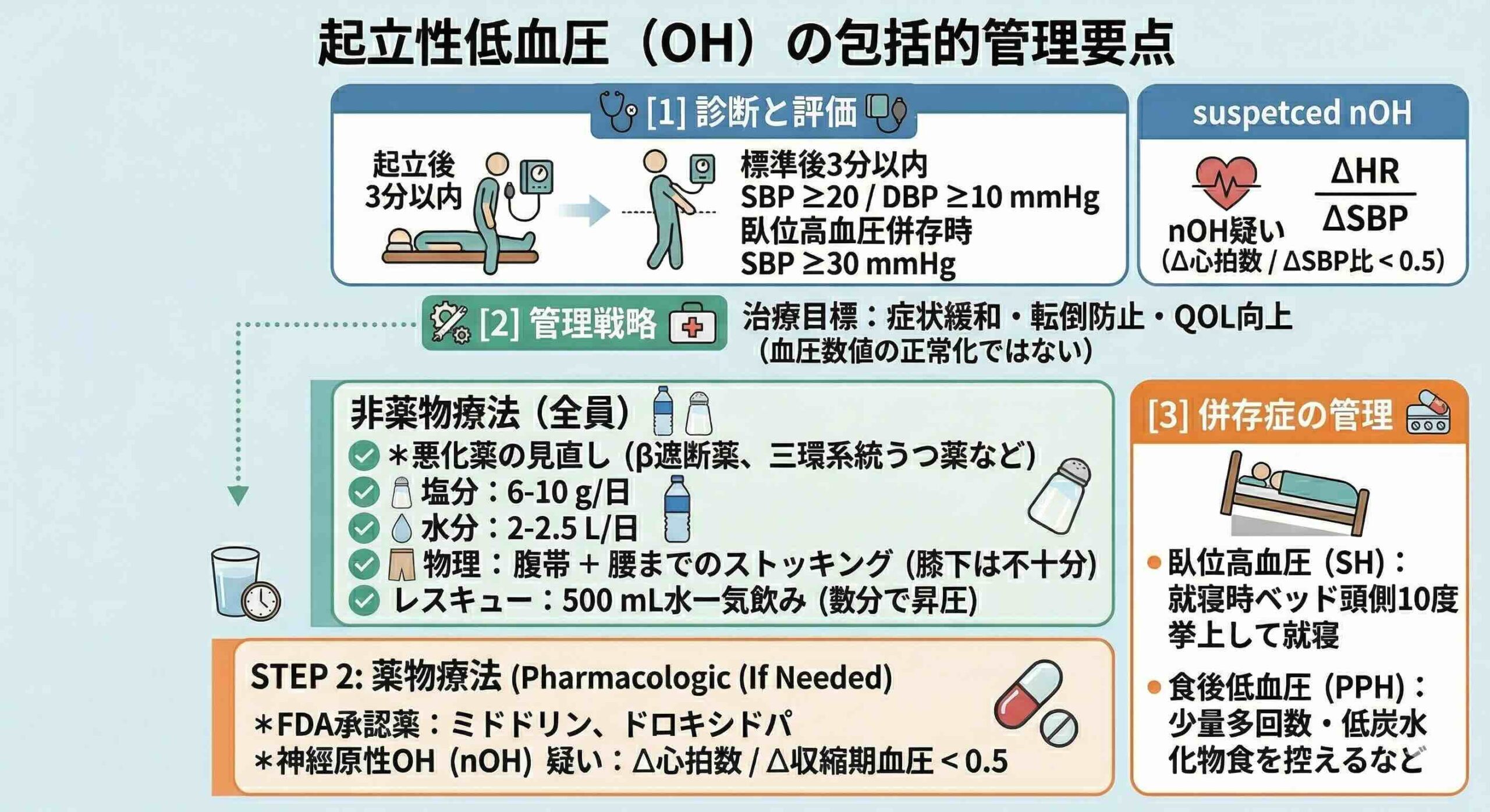 起立性低血圧の管理は、単なる薬物療法ではなく、患者の生活習慣を再構築するプロセスです。
